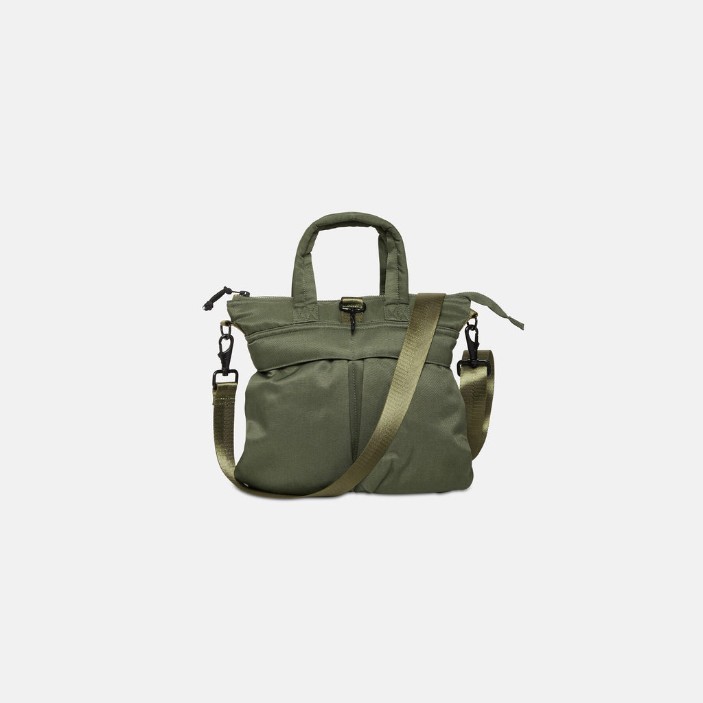Compact and functional, the Small Helmet Bag by Spiewak draws inspiration from classic U.S. military gear. Crafted from durable Titan Cross fabric—a blend of nylon and cotton—it offers a lightweight yet resilient structure. Featuring a removable shoulder strap and reinforced top handles, it can be carried comfortably by hand or worn over the shoulder, making it a versatile everyday companion.