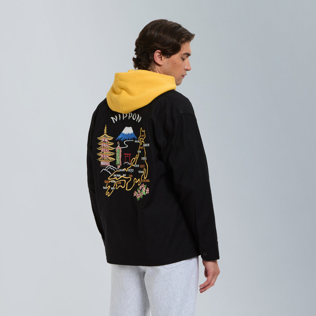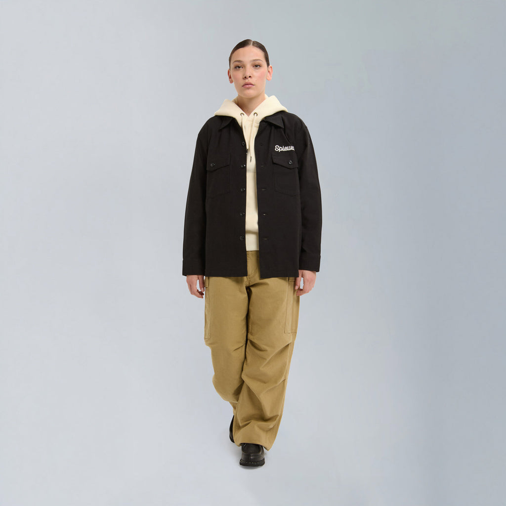 Inspired by the classic 1960s U.S. Army utility shirt, this piece is reimagined with a relaxed, oversized silhouette for a modern fit. Detailed embroidery and vintage-style accents add character, giving the shirt an authentic military feel with a contemporary twist.