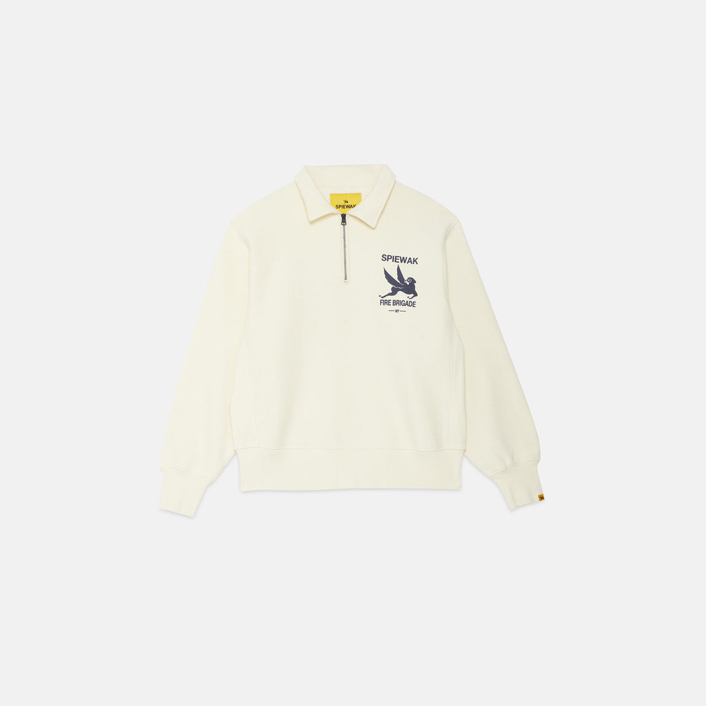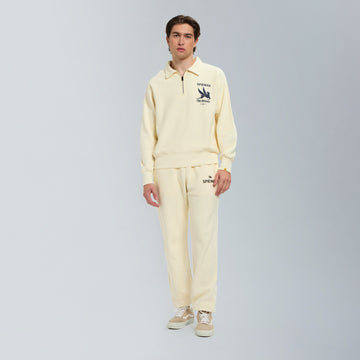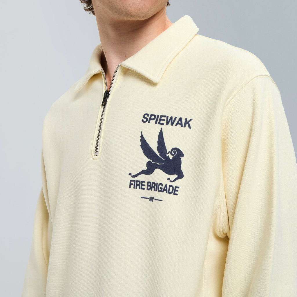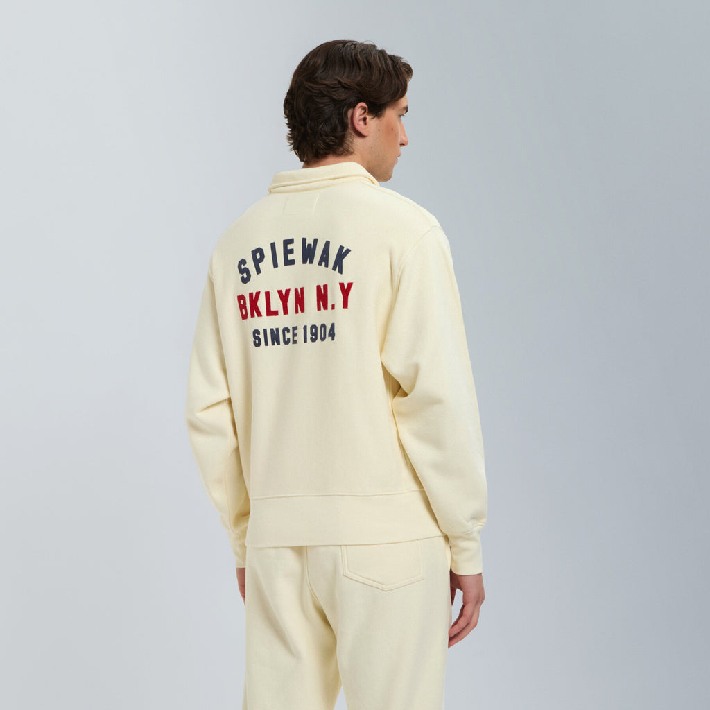 Part of the vintage-inspired sweatshirt series, the Half-Zip Stand Collar is crafted from classic fleece fabric made with open-end yarn on the outer layer. This unique construction gives the piece a structured silhouette and dry hand feel, echoing the authentic texture of vintage sportswear.